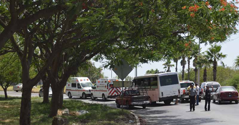 El percance es entre un microbús y una camioneta, cuyo chofer rebasó el límite del alto. Entre los lesionados hay un bebé de tres meses de nacido. Ocurre en el punto denominado “El Caracol”.