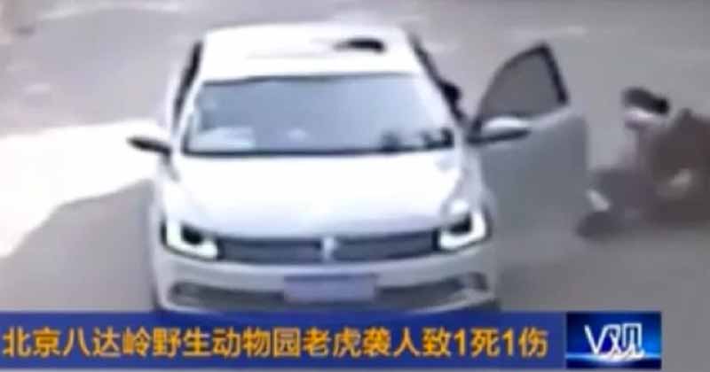 El video registrado unos 60 kilómetros de Beijing, China, muestra el momento en que la mujer es arrastrada por un tigre