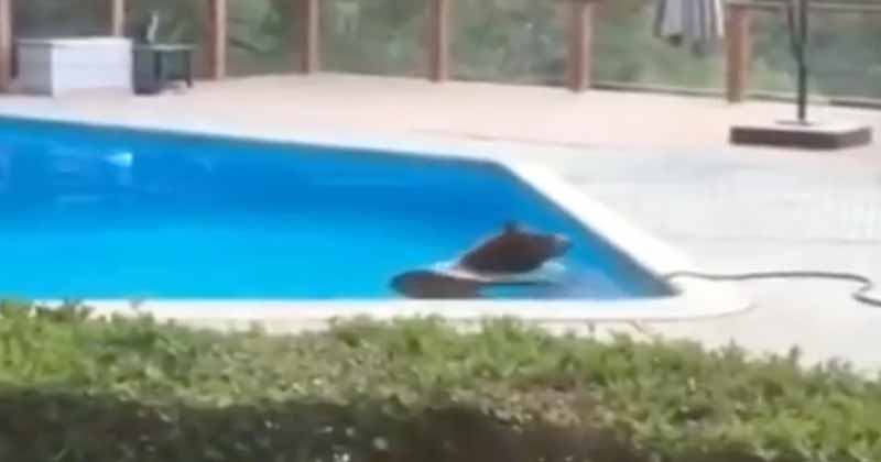 El oso salvaje decidió relajarse en la piscina de un residente local