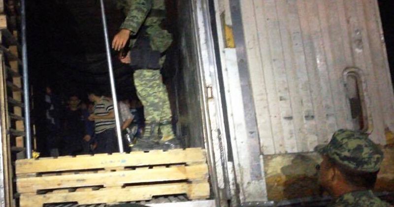 Personal de la Sedena destacamentados en el puesto militar de seguridad en Oyama, detectaron y aseguraron a 104 migrantes extranjeros y detuvieron al chofer de un tracto-camión