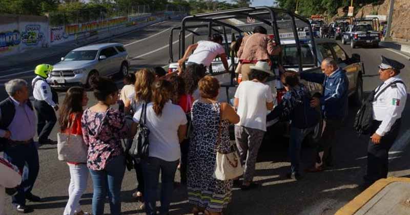 Las unidades oficiales que ya se encontraban cerca del auditorio, comenzaron a movilizar a la gente que se vio impedida a llegar al recinto en taxis o vehículos particulares