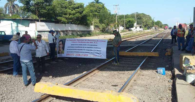 Maestros bloquean vías del tren en Altamira; piden cárcel para Zedillo