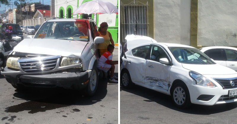 Mujer no respeta el alto obligatorio y le pega a un coche de reciente modelo, cuya conductora pierde el control y embiste a una peatonal. Luego, ese mismo coche, se fue contra un tercer carro