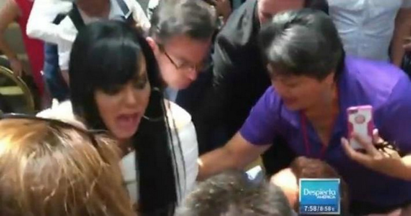 La costarricense perdió el equilibrio cayendo sobre un fan que acudió al evento en silla de ruedas.