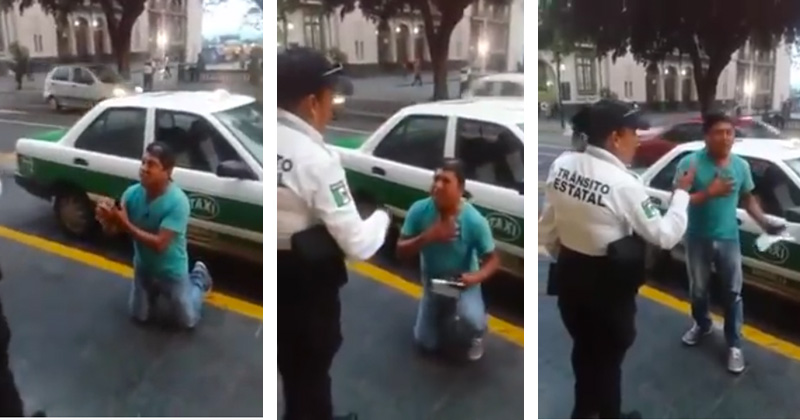 Un taxista en Xalapa pide de rodillas a una agente de tránsito estatal que no le levante una multa