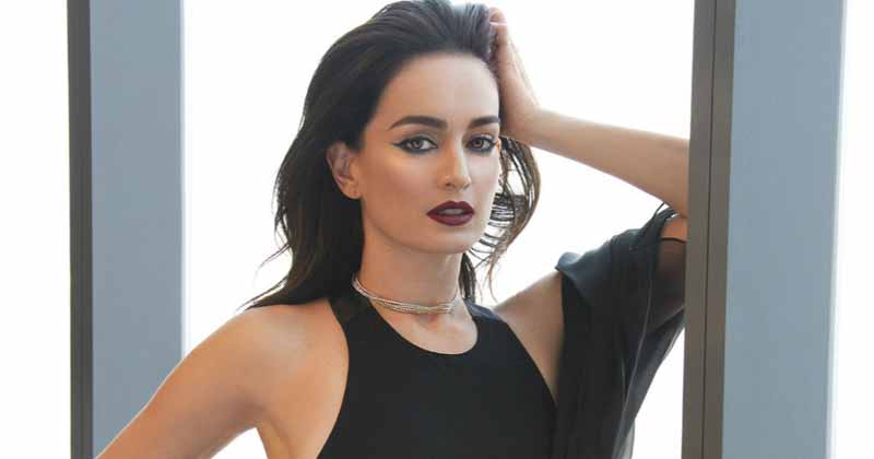 En la imagen que tiene de fondo la playa se ve a la actriz lucir un diminuto bikini en color negro que apenas podía tapar sus “encantos”, mientras da un salto de alegría