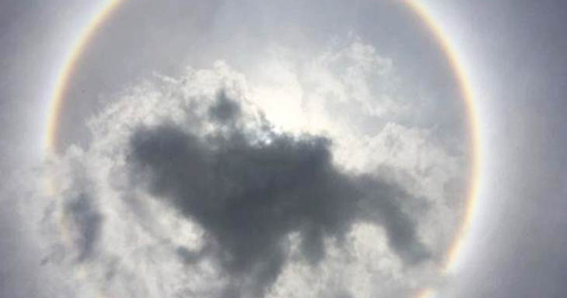 Cerca de las 12:00 horas, alrededor del sol apareció un círculo con diversas tonalidades