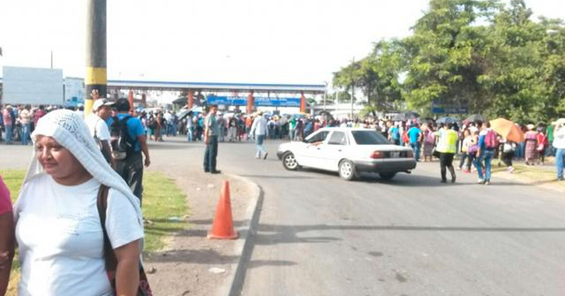 Los educadores centroamericanos apostados en el puente internacional de Talismán interrumpieron el tránsito de la frontera del lado de Guatemala