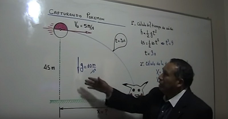 El docente realizó un ejercicio de ‘Movimiento parabólico’ en el que se puede ver la velocidad de caída de la pokébola para capturar un Pikachu, tal como sucede en Pokémon Go
