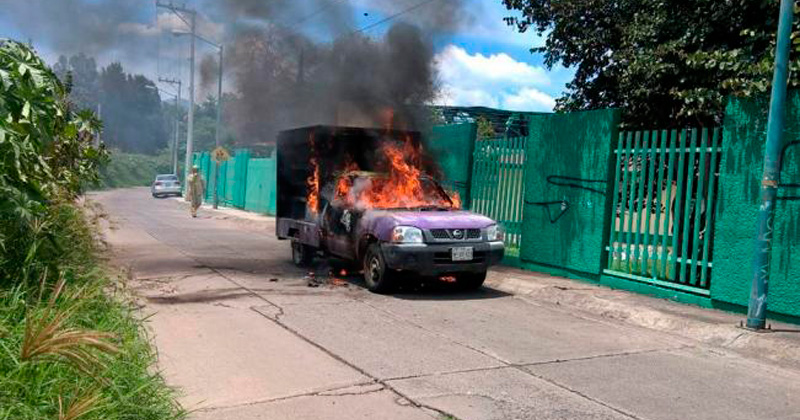 Minutos antes de las 15:00 horas, estudiantes de la Normal Superior de Morelia incendiaron una camioneta repartidora de dulces en la colonia Torremolinos