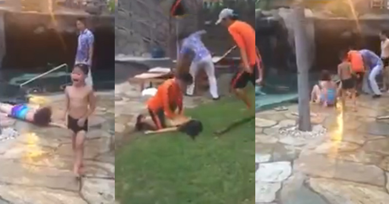 La tragedia fue captada en un video, en el que se aprecia a otras personas convulsionarse cerca de la piscina