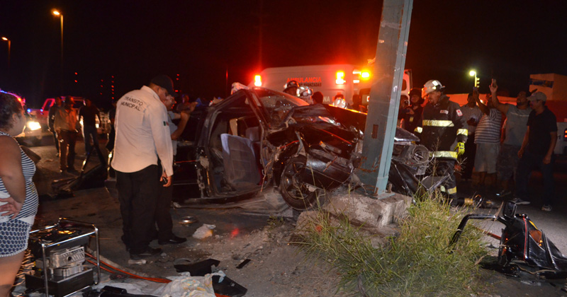pero lamentablemente en su trayecto, el conductor pierde el control por el estado de ebriedad y choca contra una luminaria, provocando que él y su pareja quedaran prensados en el