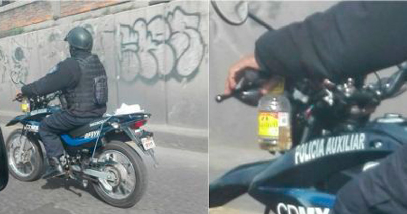 Captan a policía manejando su moto con un envase de Tonayan