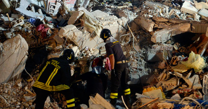 Bomberos rescataron hasta el momento a 215 personas con vida de entre los escombros tras el sismo que se registró en el centro de Italia