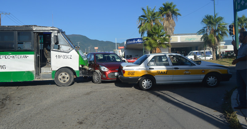 La unidad se desplazaba a exceso de velocidad y en un transitado cruce el chofer aplica los frenos pero no le responden, causando choque múltiple. Tres personas fueron auxiliadas.