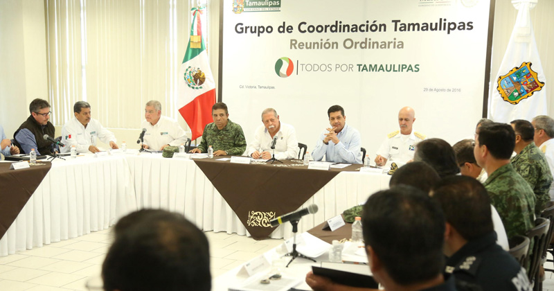 Por la mañana, Francisco García asistió a la reunión ordinaria del Grupo de Coordinación Tamaulipas en las instalaciones del Complejo de Seguridad