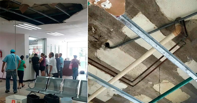 Una fuga de agua potable ocasionó que se cayera el plafón justo en la entrada