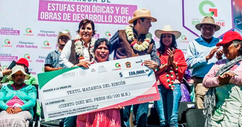 Rosario Robles y Ávila Villegas hicieron entrega de tres mil 700 estufas ecológicas, 20 certificados de vivienda a personas indígenas y 23 proyectos productivos