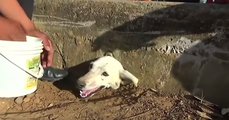 Perro se queda atorado y pasa horas expuesto al sol (video)