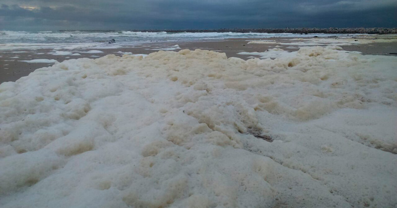 Altas concentraciones de carbono son responsables de generar una capa de espuma en el mar y que es arrastrada a la zona costera