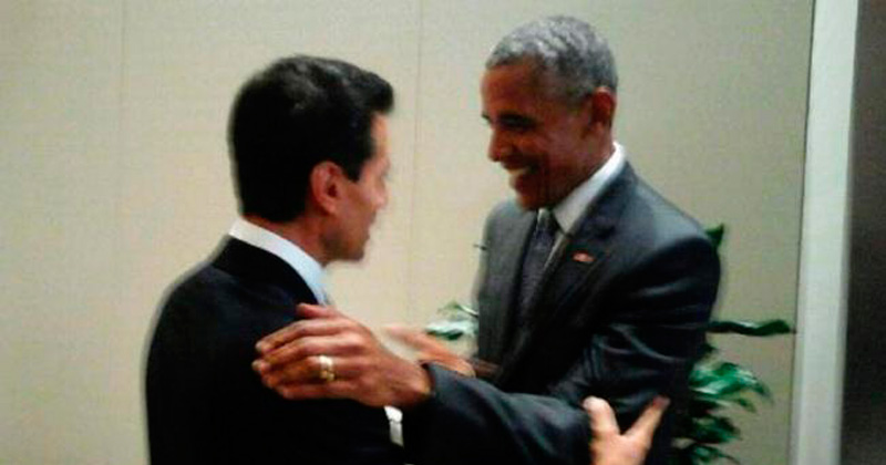 La Presidencia de México colocó en su sitio de Twitter dos fotografías del primer saludo que tuvieron Peña y Obama en esta ciudad del sudeste chino