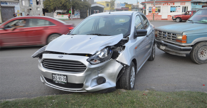 Señora intenta ganarle el paso con su flamante coche a un albañil. Al no alcanzar a frenar, el alarife la impacta con su camioneta.