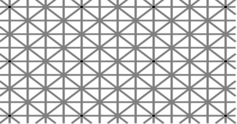 En esta imagen hay doce puntos negros distribuidos de forma regular. Si intentas verlos todos a la misma vez, comprobarás que es prácticamente imposible.