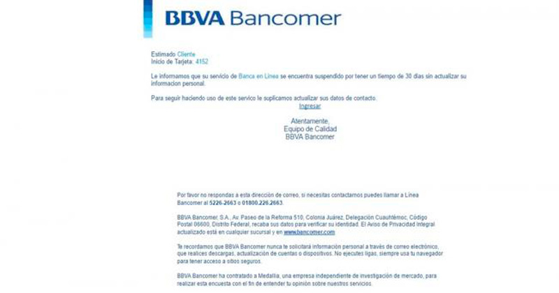 El organismo emitió la doceava alerta en lo que va del año de correos falsos de instituciones financieras en México que pretenden engañar a los usuarios
