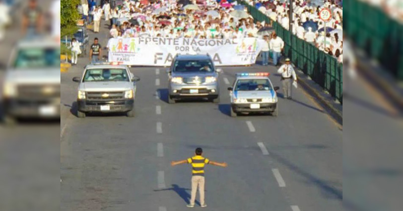 Niño ‘intenta’ detener marcha contra matrimonio igualitario
