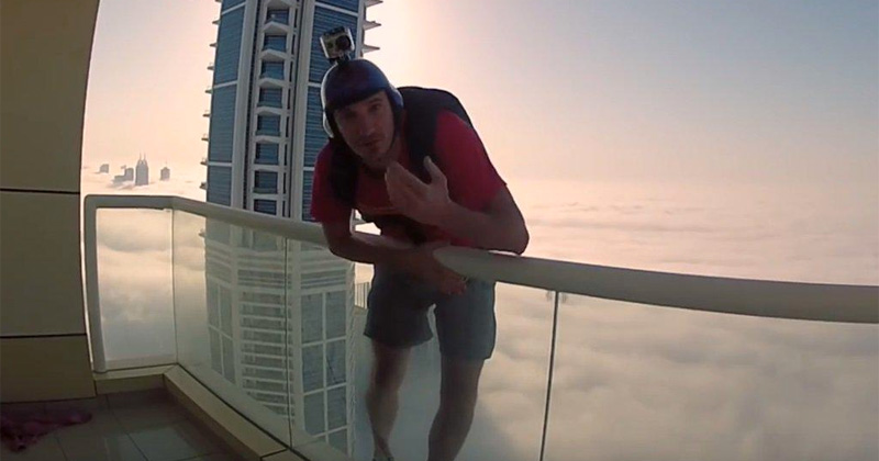 El salto fue filmado por un amigo que se encontraba en el mismo edificio.