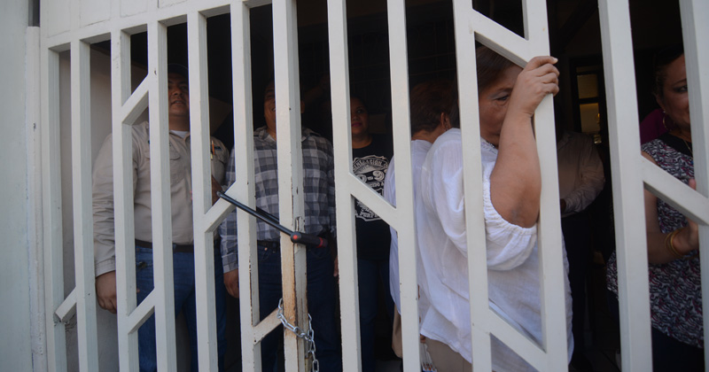 CIUDAD VICTORIA, Tamaulipas.- Integrantes de la sección 51 del Sindicato Nacional de Trabajadores de la Secretaría de Salud tomaron el edificio sede para exigir a la secretaria general, Maribel González Arredondo, que convoque a elecciones en Victoria, Madero, Jaumave, Padilla y Tula.