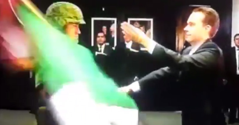 Circula en Internet un polémico vídeo donde un soldado le arrebata la bandera mexicana al gobernador de Chiapas, Manuel Velasco