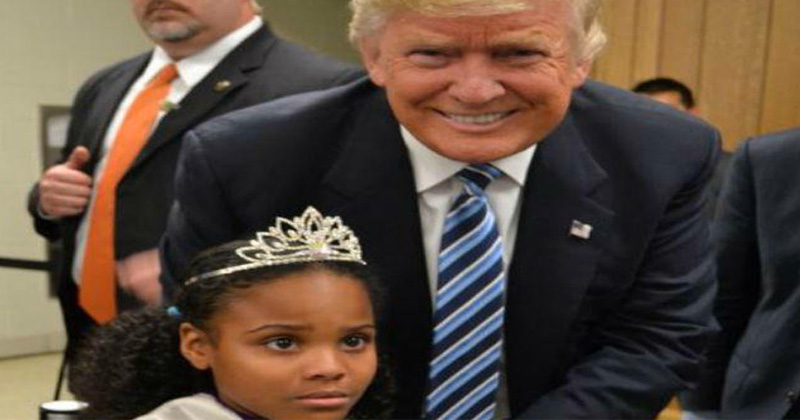 Una pequeña de tan solo nueve años y ganadora del concurso ‘Miss Flint’, conoció al candidato republicano y su rostro atemorizado causó sensación en la red
