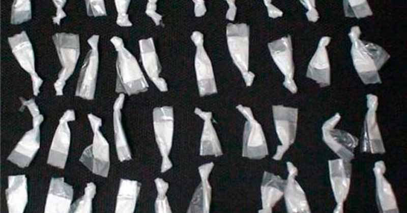 Fueron aseguradas tres camionetas y un tráiler con doble fondo, tres libretas profesionales, una báscula gramera color gris, 900 gramos en paquete y 150 dosis de cocaína