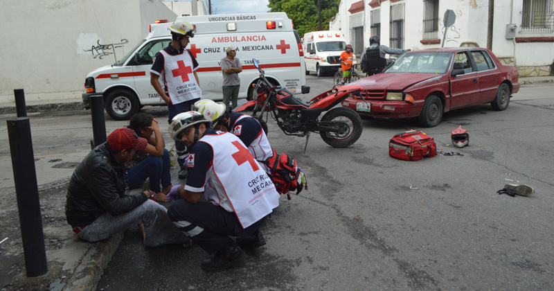 La dama fue quien recibió más el golpe. Ambos fueron atendidos por los técnicos en urgencias médicas. Una joven a bordo de su auto rebasa el límite del alto