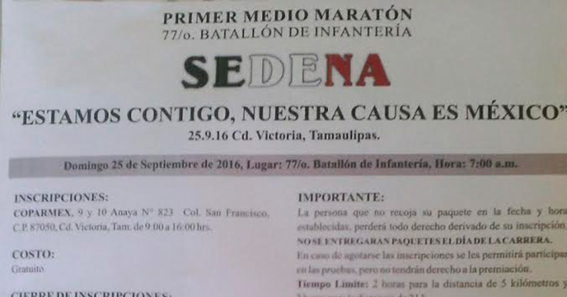 Será un recorrido de 21 kilómetros el 25 de septiembre, saliendo del 77 batallón en Victoria