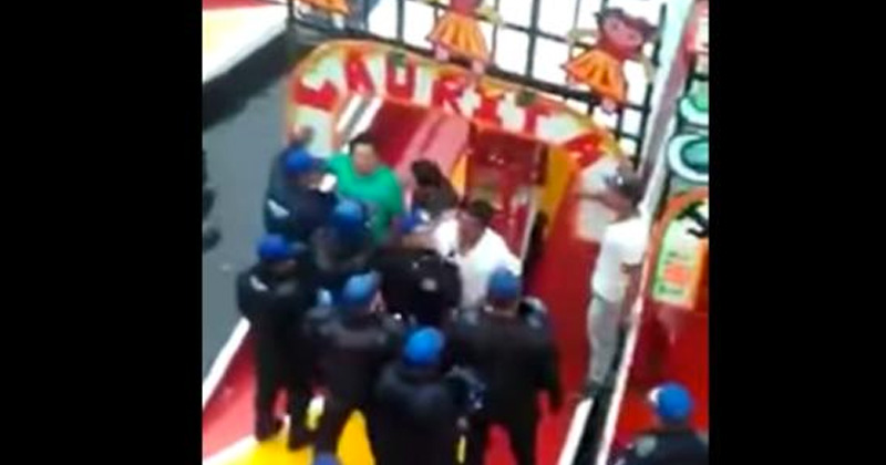 Comerciantes golpearon y desarmaron a un uniformado, lo que provocó el enfrentamiento en el que se arrojaron sillas de madera