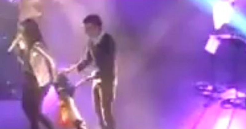 La cantante señaló al escenario en dirección a un joven que emocionado creyó que lo llamaban a la plataforma, pero la artista lo bajó