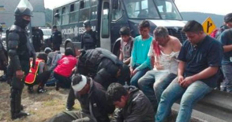 Se enfrentan normalistas y policías en Michoacán; 47 detenidos