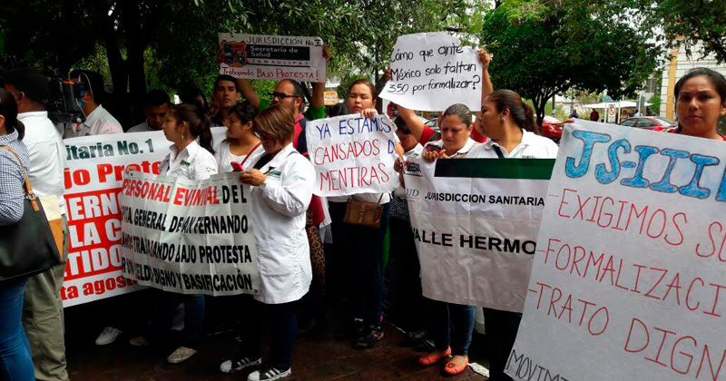 Enfermeras y doctores de Jaumave, Valle Hermoso y otras partes del estado se manifiestan nuevamente frente a la Secretaría de Salud