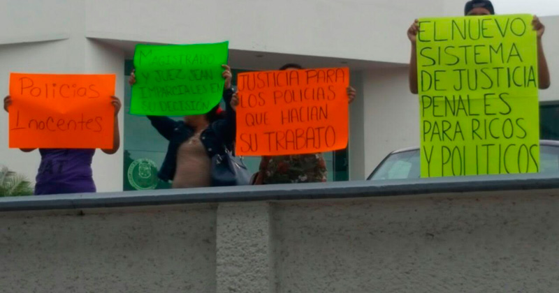Con pancartas donde exigen imparcialidad a al juez y al magistrado que llevarán el caso