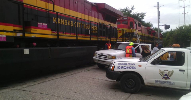 El chofer se desesperó y en la fila comenzó a rebasar, pero su intento por pasar las vías fueron en vano al ser alcanzado y golpeado