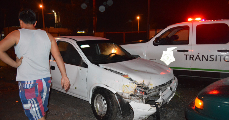 Obrero tripulaba un coche compacto y se estampa contra un señalamiento de Pemex. Aseguró a los oficiales que otro vehículo lo sacó del camino