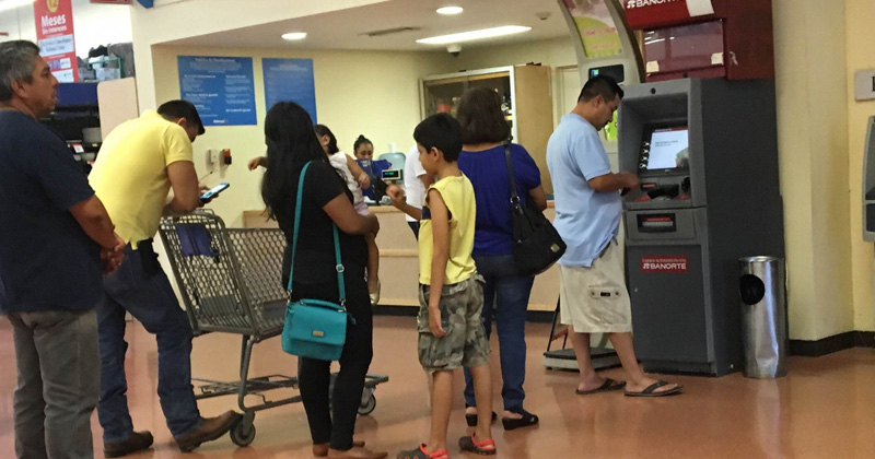 En cajeros de tiendas comerciales y bancos de Victoria, desde temprana hora se pudo ver las filas de personas que esperaban revisar el estado de cuenta, sin que el pago de la compensación se reflejará, ocasionando la molestia de trabajadores y nerviosismo en las madres de familia que esperaban realizar la despensa.