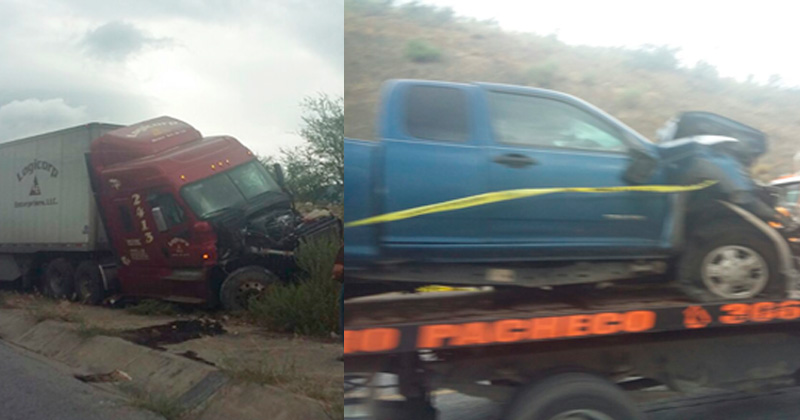 Los ahora occisos son hombre y mujer. Perdieron la vida al instante. Aparentemente los ahora occisos invadieron carril. Un segundo tráiler volcó a causa del choque