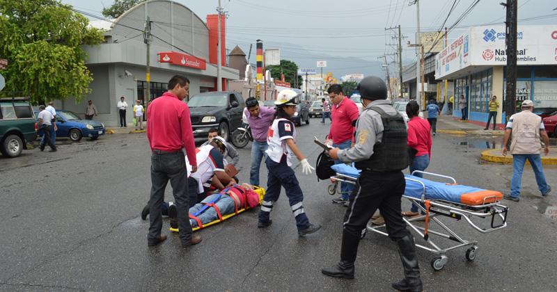 El esposo de la lesionada se pasa un alto obligatorio. Los daños materiales fueron considerables. El percance en la zona centro