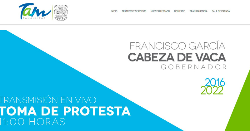La página muestra la renovada estructura de la administración estatal y los 23 titulares de éstas. Además, detalla el decálogo que pronunció en el evento de ayer en Tampico.
