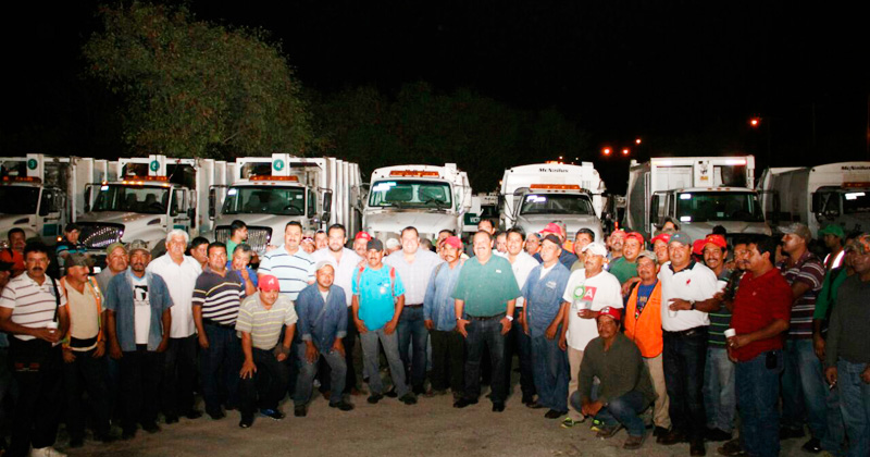 CIUDAD VICTORIA, Tamaulipas.- Al punto de las 5 de la mañana y como su primer acción como presidente municipal de Victoria, el alcalde de Óscar Almaraz Smer hizo entrega de 15 camiones recolectores de basura, dentro de las labores en su plan para mejorar el servicio público en menos de 35 días.
