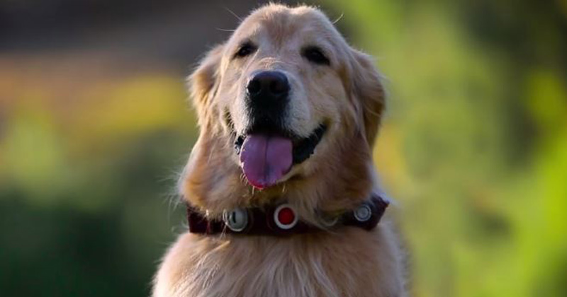 En un experimento realizado por Disney, colocaron un collar a un labrador que aparentemente lo hacía hablar, haciendo referencia al personaje de la película de Pixar