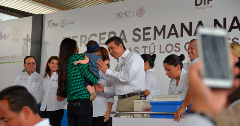 CIUDAD VICTORIA, Tamaulipas.- Del 10 al 14 de octubre, se llevará a cabo la Tercera Semana Nacional de Salud, «Mientras tú los quieres, las vacunas los protegen», misma que fue puesta en marcha esta mañana en la primaria «Canaco» por el gobernador del estado, Francisca García Cabeza de Vaca y la presidenta del DIF Tamaulipas, Mariana Gómez de García.